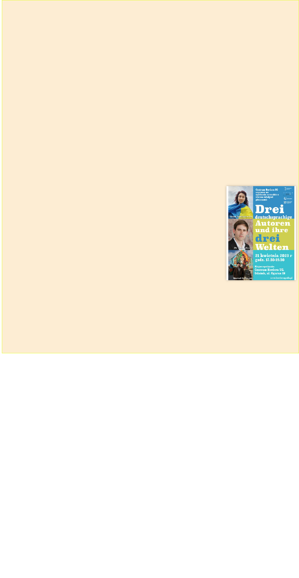 21. April 2023 im Centrum Herdera in Danzig mit Marcel Krüger (PL): INFOS